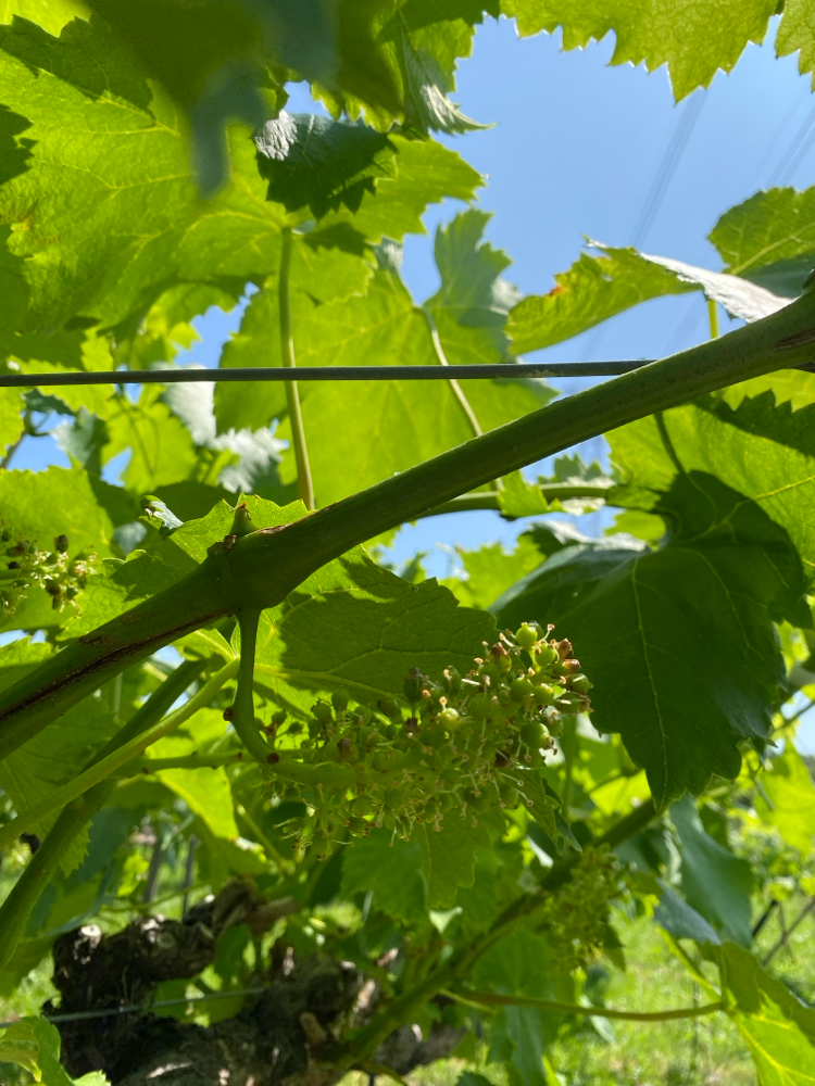 少し前にブドウの花が咲きました。 蕾から出ている線のようなものがブドウの花です。