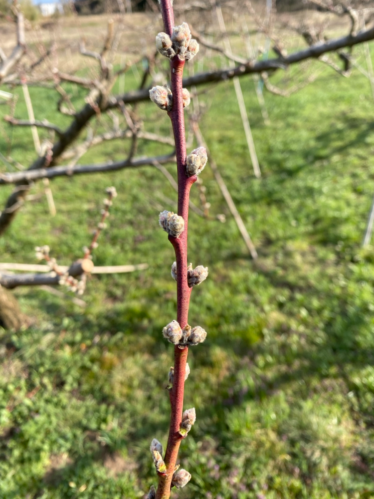桃のつぼみがたくさんついているので、指でポチポチと落としていく作業です。
